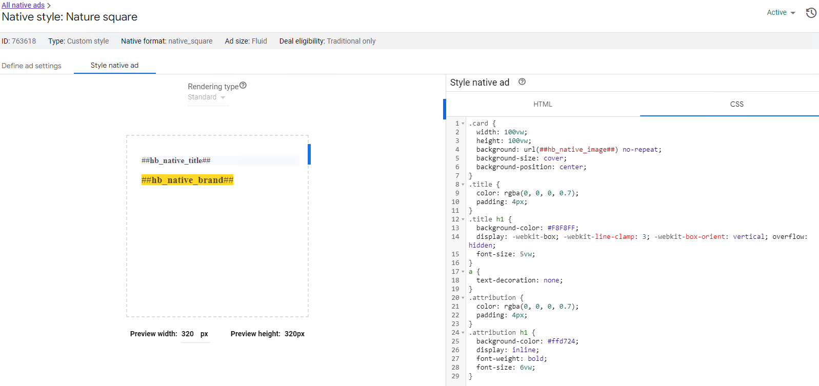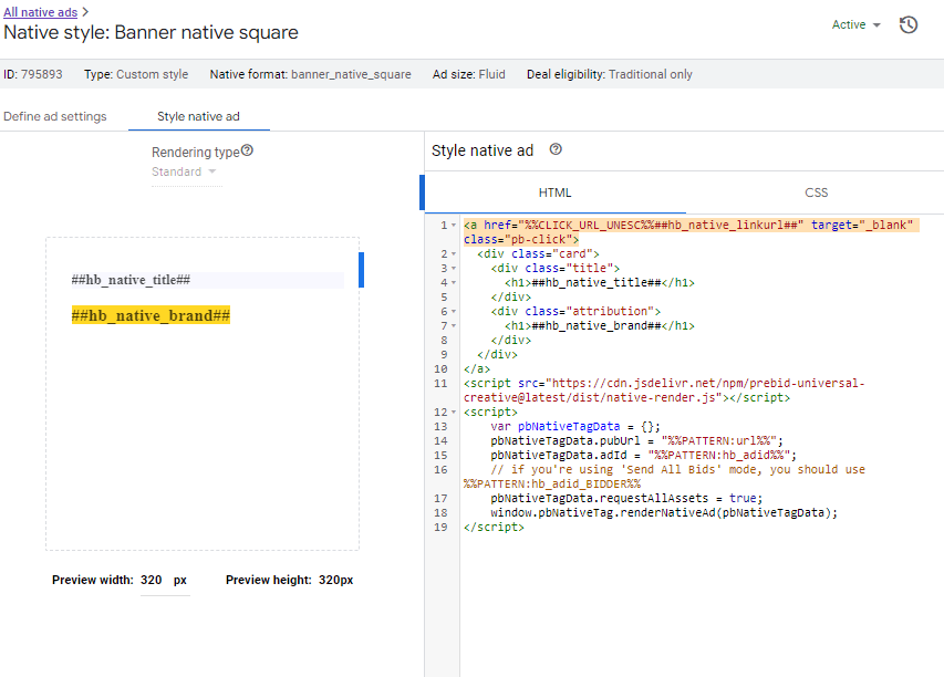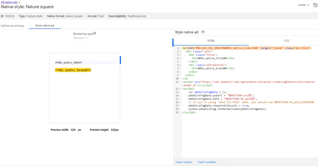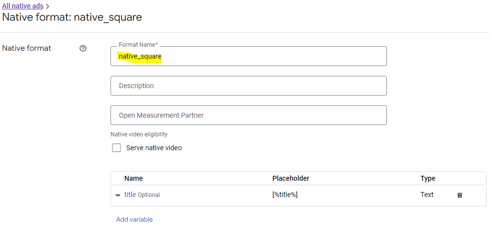 That finishes the definition of the Native Square ad. You can define other ad formats by following the same steps. The only difference is their HTML and CSS code.